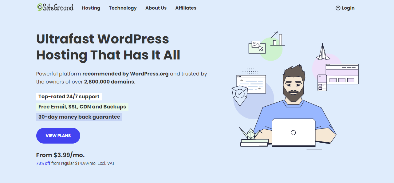 SiteGround's WordPress Hosting package is the perfect choice for those who want to host a WordPress website. This plan is specifically designed for WordPress and offers the following features: