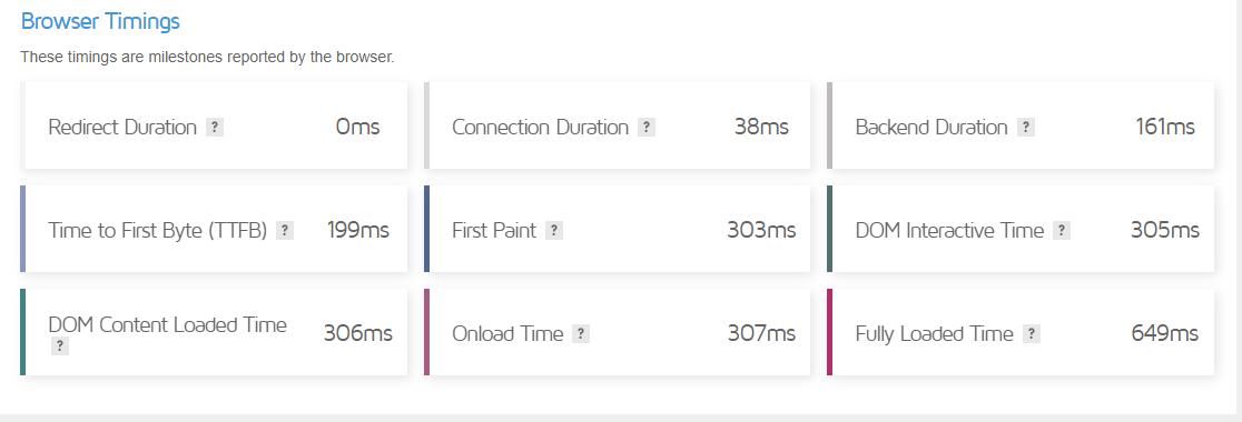 We found Onload Time was recorded at 307 ms, and the Fully Loaded Time took 649 ms. These timings indicate a well-optimized website that delivers a smooth and efficient user experience.